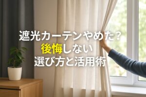 • カーテンレール:カーテンレールの両端が壁側に向かって折れている「リターン仕様」のレールを選ぶと、横からの光漏れを劇的に減らすことが可能です。また、レールの上部を覆う「カバートップ」を設置すれば、上部からの光の侵入も防げます。