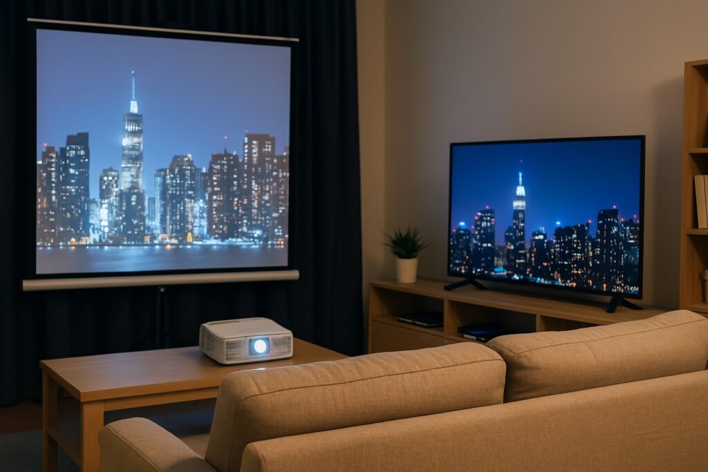 プロジェクターとテレビ、どちらを選ぶべきか迷っている方は少なくありません。それぞれに長所と短所があり、用途やライフスタイルによって向き不向きが分かれます。ここでは両者の特徴を比較しながら、どんな人にどちらが合っているかを解説します。