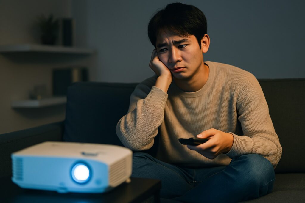 第一に挙げられるのが、「設置と準備が手間で使わなくなる」というパターンです。プロジェクターは投影距離や角度の調整、スクリーンの設置、部屋の明るさの管理など、視聴前に準備が必要な機器です。そのため、日々の生活が忙しい方にとっては、準備に時間がかかること自体が大きなハードルになります。たとえ映画が好きでも、「今日は面倒だからやめておこう」という日が増えていくと、結果的にまったく使わなくなるのです。